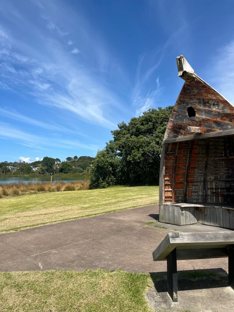 Causeway road is also home to 3 manmade sculptures a cut in half boat, a Ram representing The Waiheke Rams and a Pod of dolphins representing The Dolphins Children’s Netball Team.