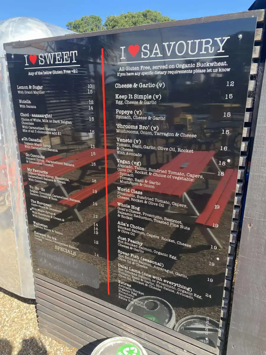 I Love Crepes is located in a vintage caravan based in Oneroa, in a small food cart complex.