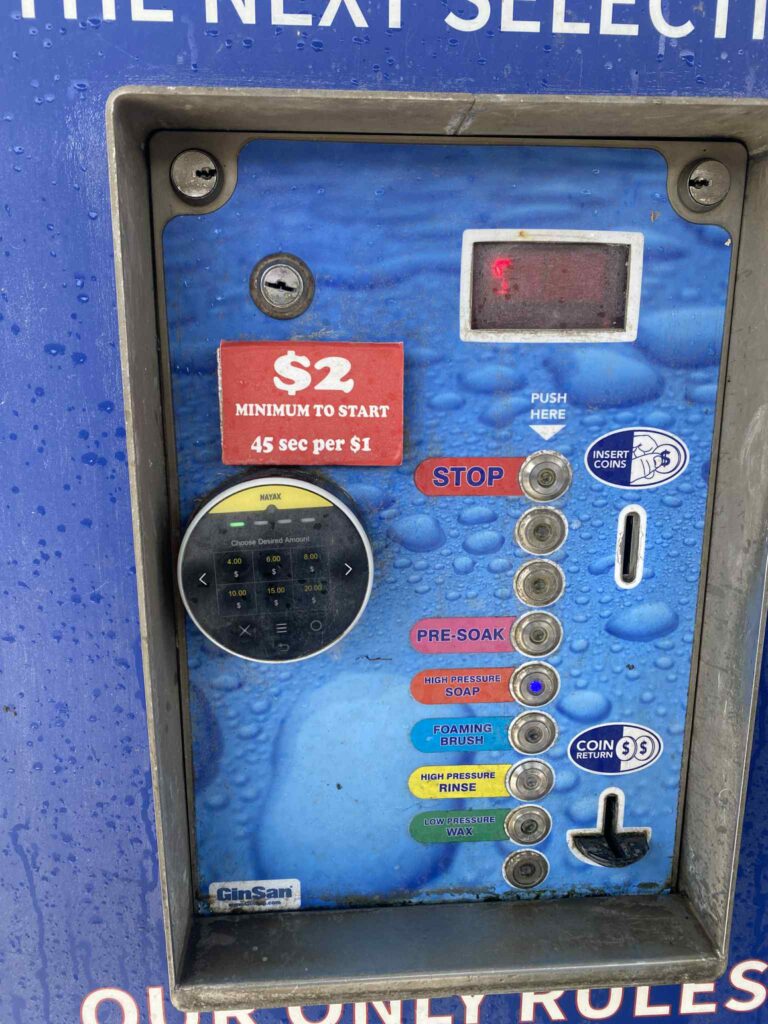 The carwash is 24/7 and you have a few options, you can clean the car yourself or you can drive through the automatic car cleaner.