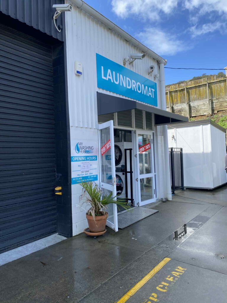 My Washing Hub Waiheke can be accessed from Tahi road. Just make sure you use the right hand side entrance, as that is the entry and the left hand side is the exit. There are some big signs labeling that.
