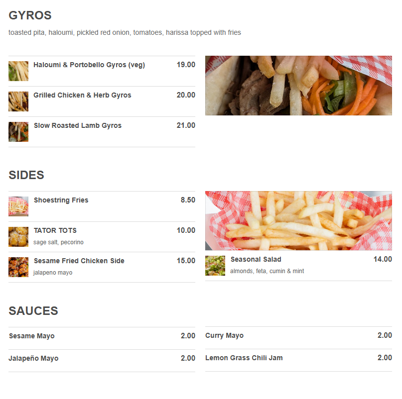 - Gyros – Vegetarian or meat
