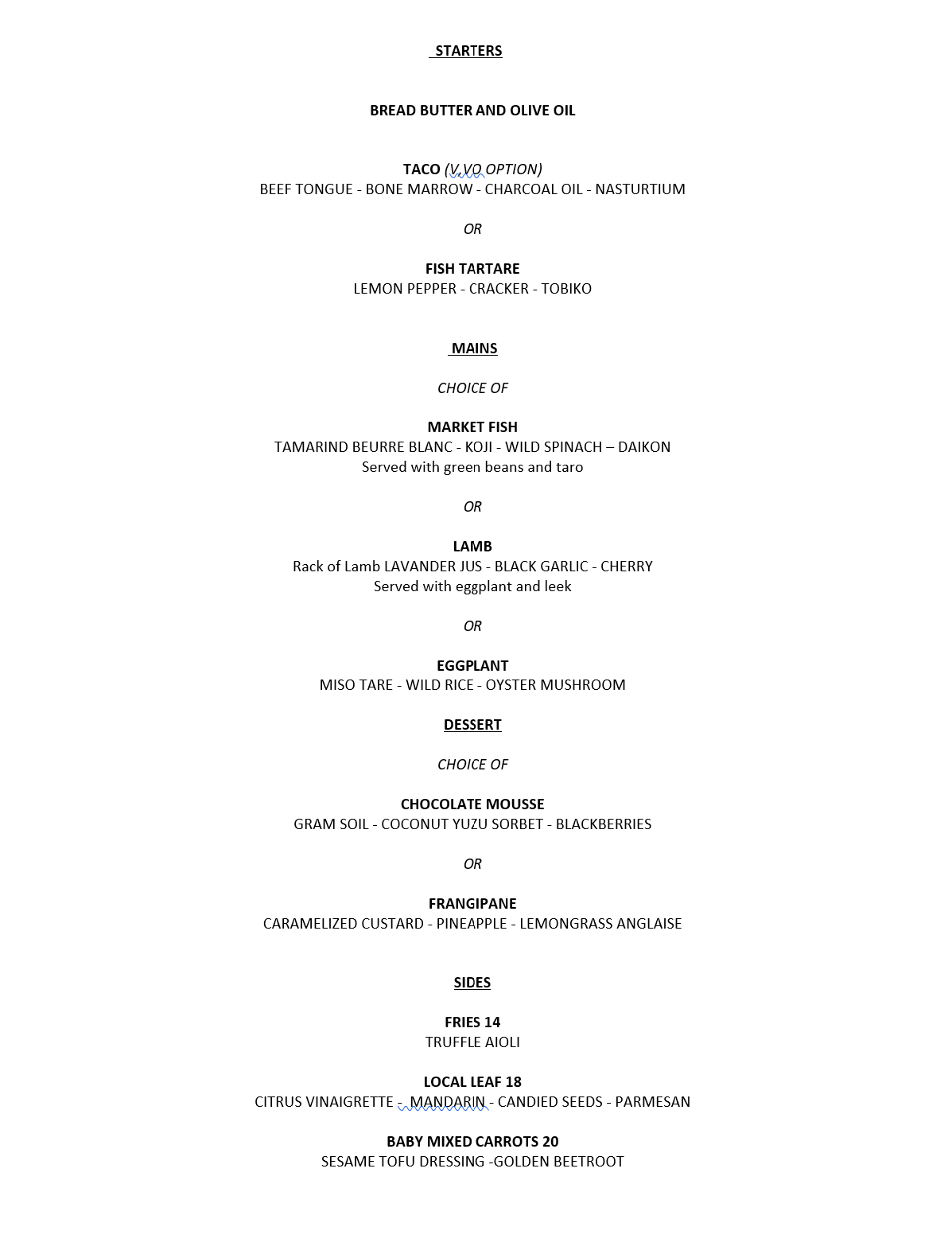 Passage Rock Menu