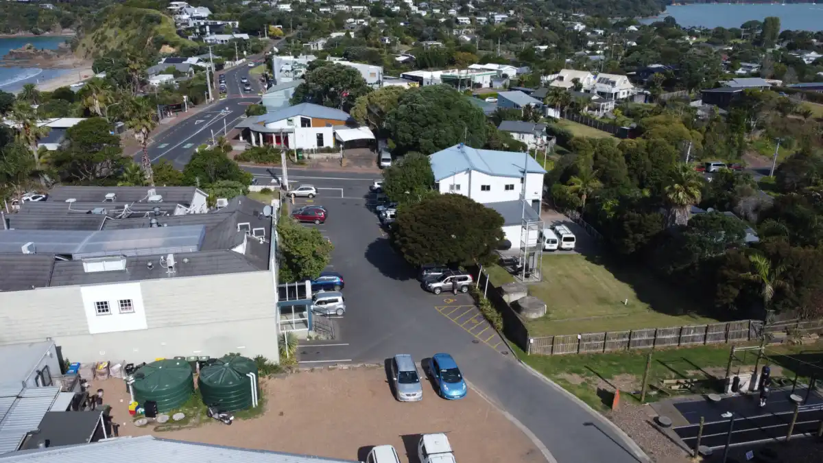 Oneroa main carpark or “Oneroa back carpark” – that’s what most locals call it – is located behind the main Oneroa shops. The carpark is split up into two main carparks. They are accessed via Oue Road or Weka Road. Oue Road parking lot is larger and allows for more parking, but unfortunately it can be full during peak hours of the day. Weka Road parking is narrow and a lot older with fewer carparks. These two carparks are almost connected.