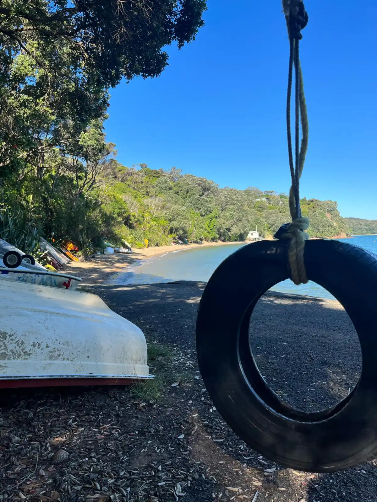 Many locals leave their dinghies and kayaks standing up against the tree line for easy access.