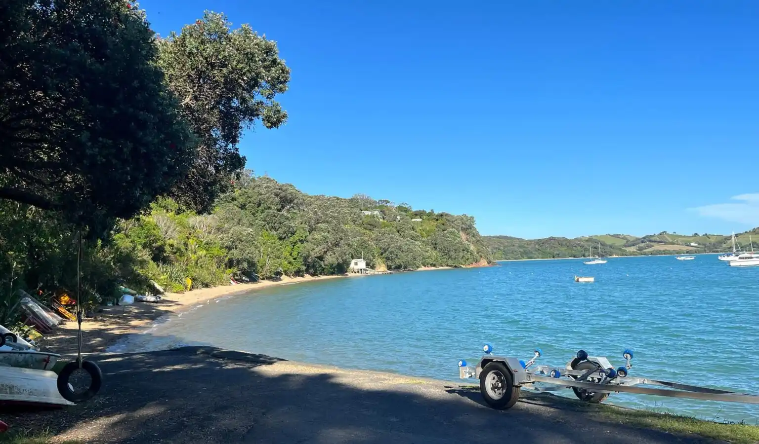 Omiha Bay boat ramp is a concrete ramp allowing access onto the sand and straight into the bay. There is plenty of space to turn a boat trailer around and leave parked up.