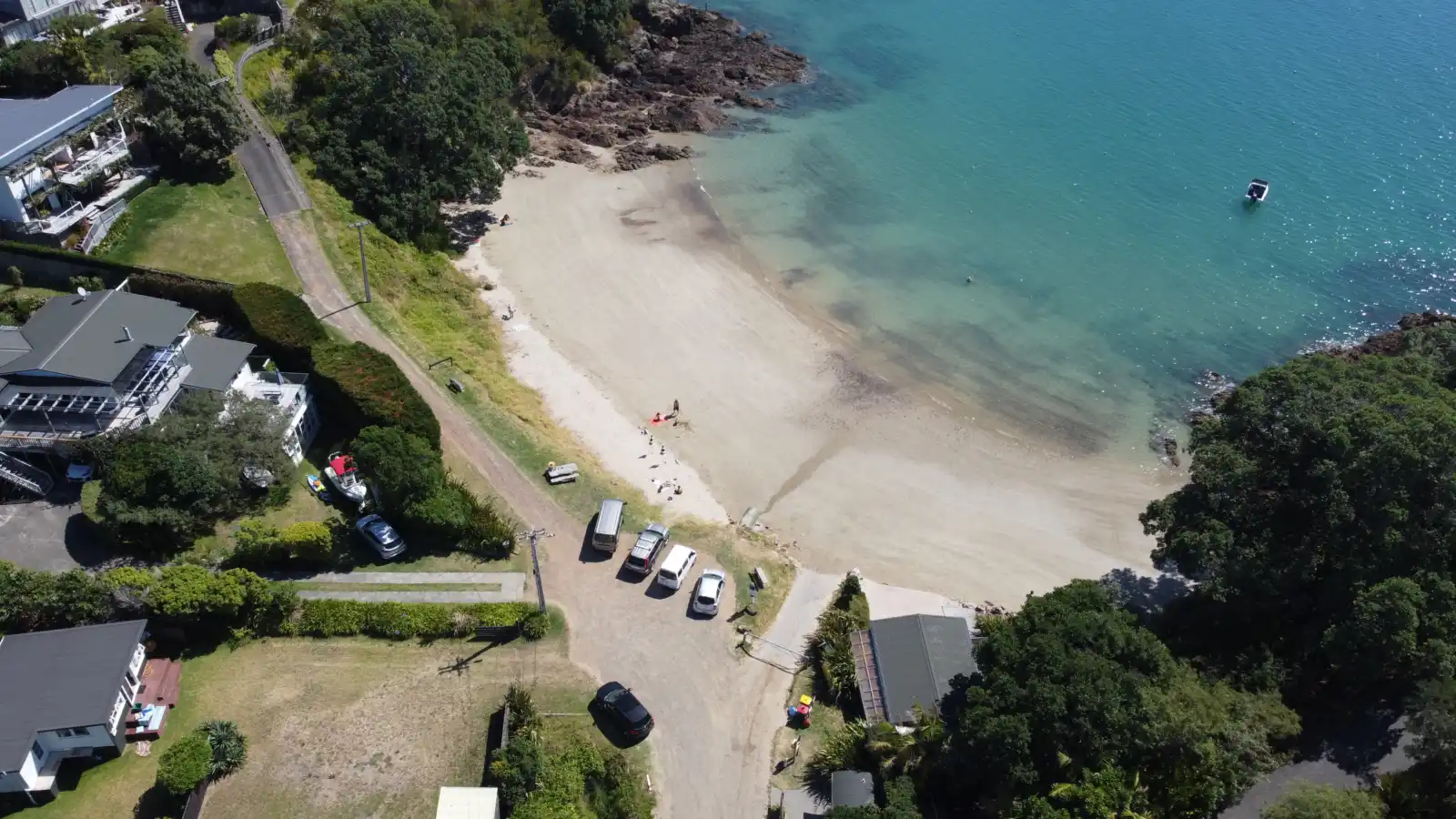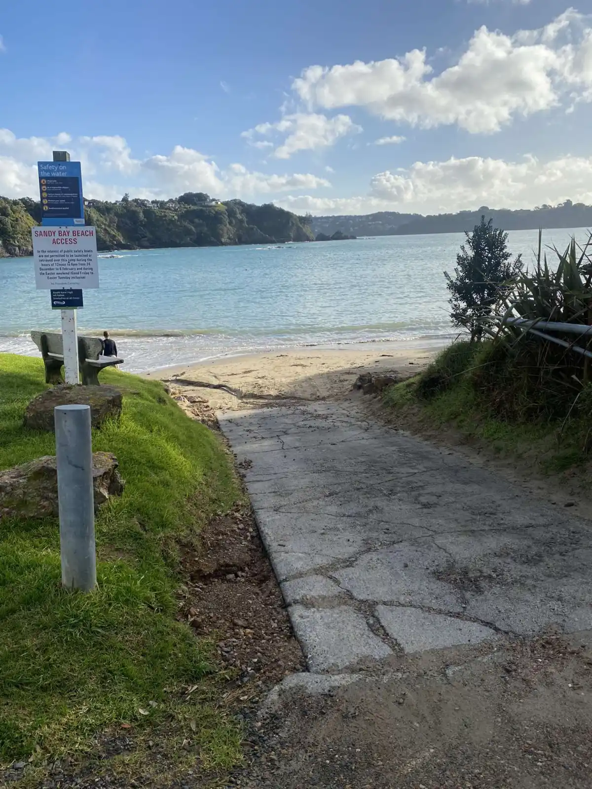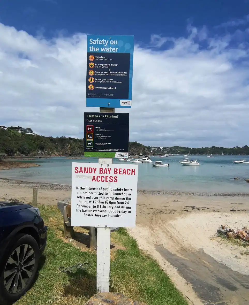 Sandy Bay boat ramp is a beach/concrete ramp located in Oneroa. It is entered via a concrete ramp onto the beach. It is only for 4WDs and Sealegs, as you can get stuck launching off the sand.