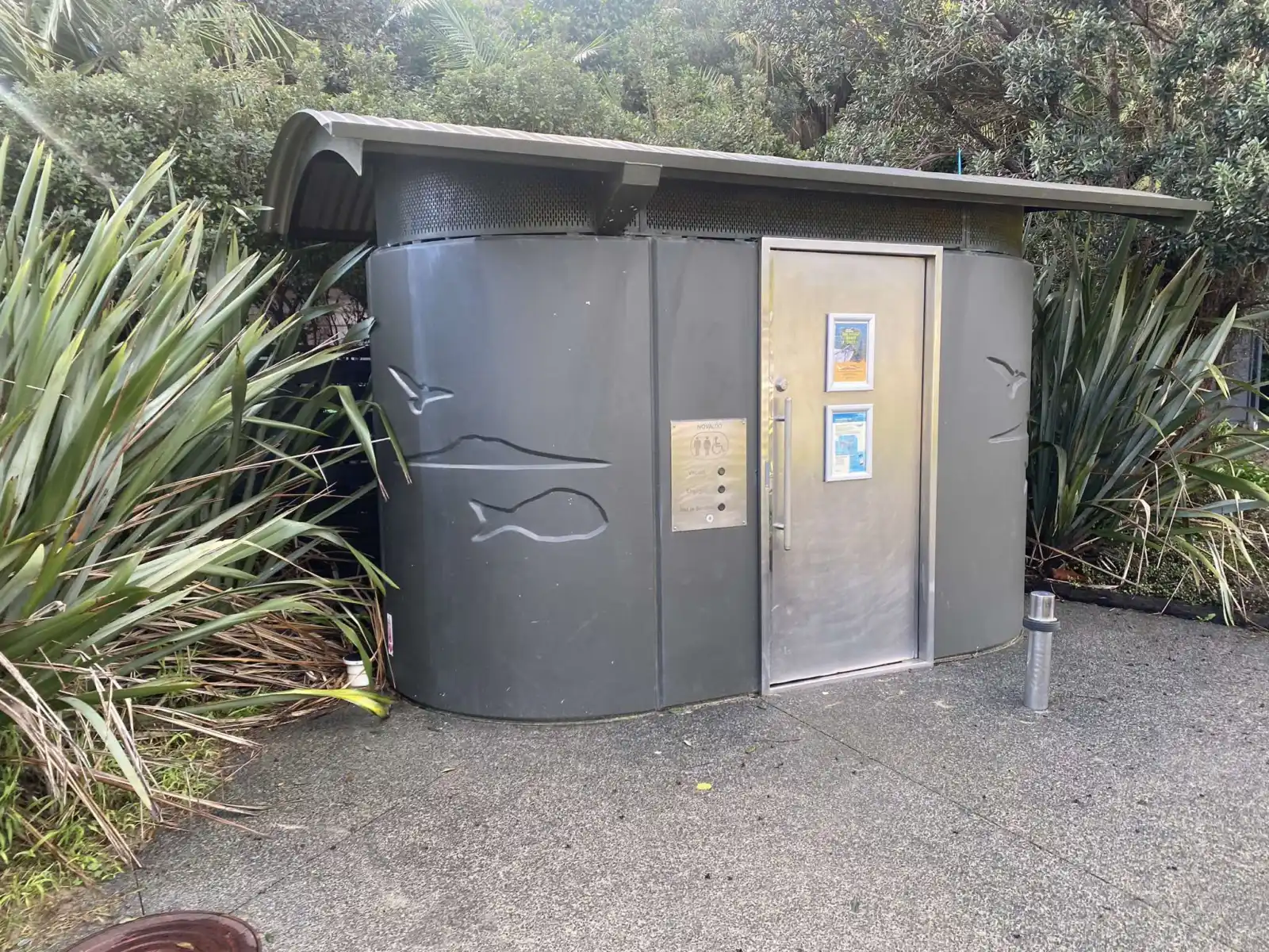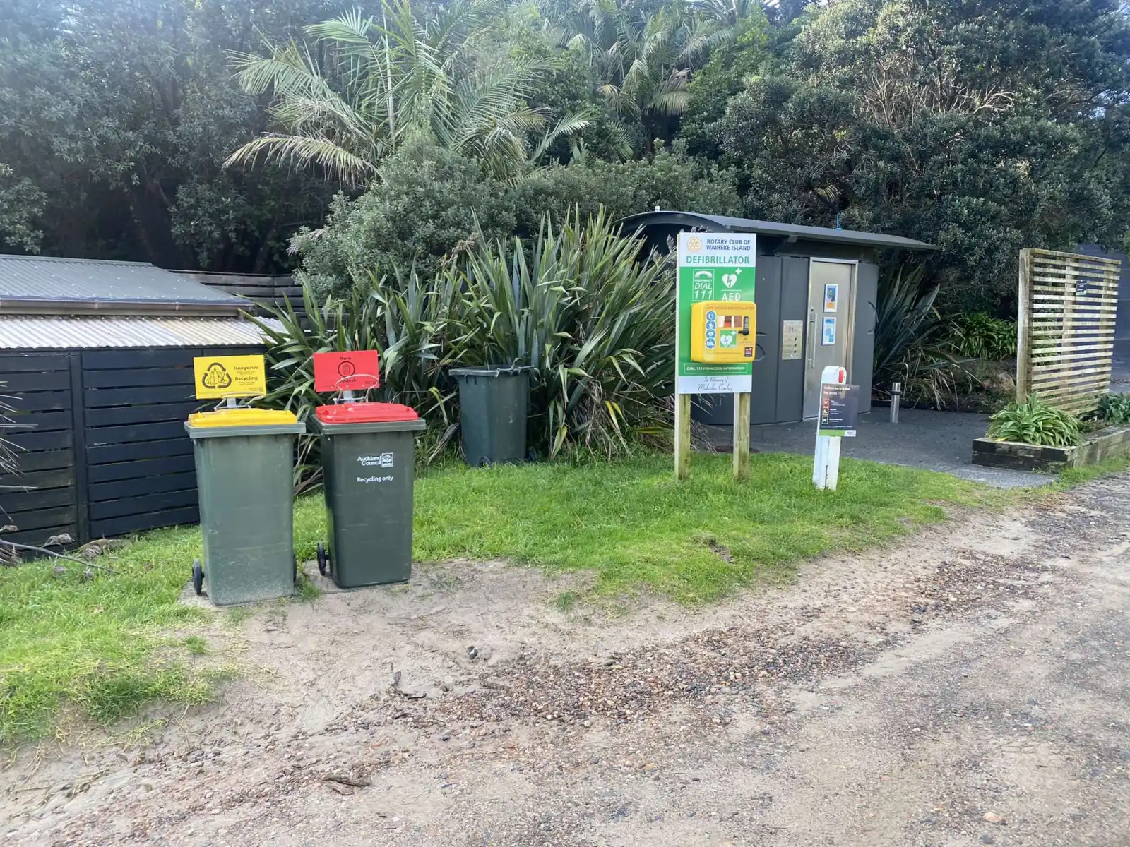 Above the beach, you can find a small grass area with a picnic table to enjoy some yummy fish and chips. A public toilet is nearby accompanied by rubbish bins.