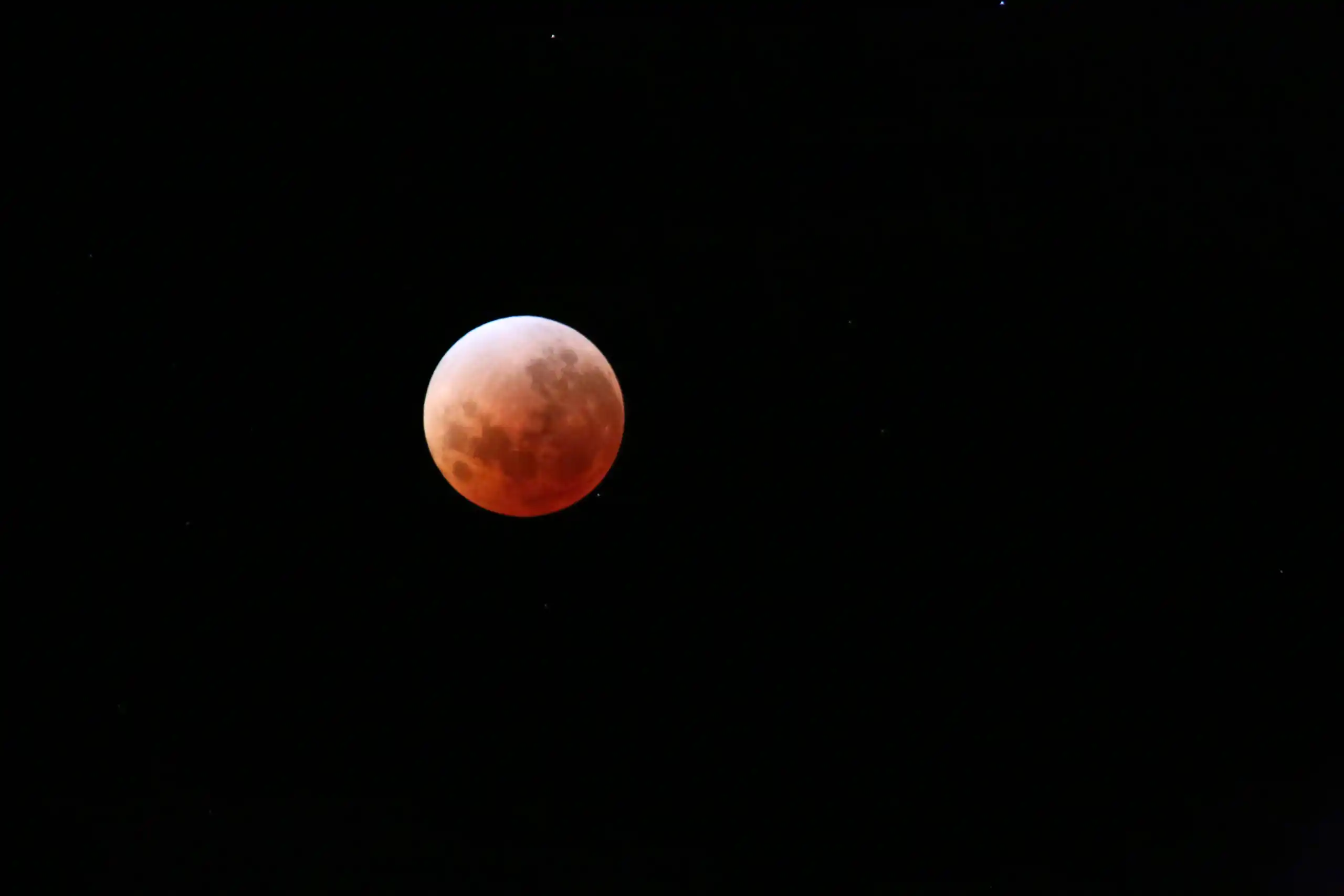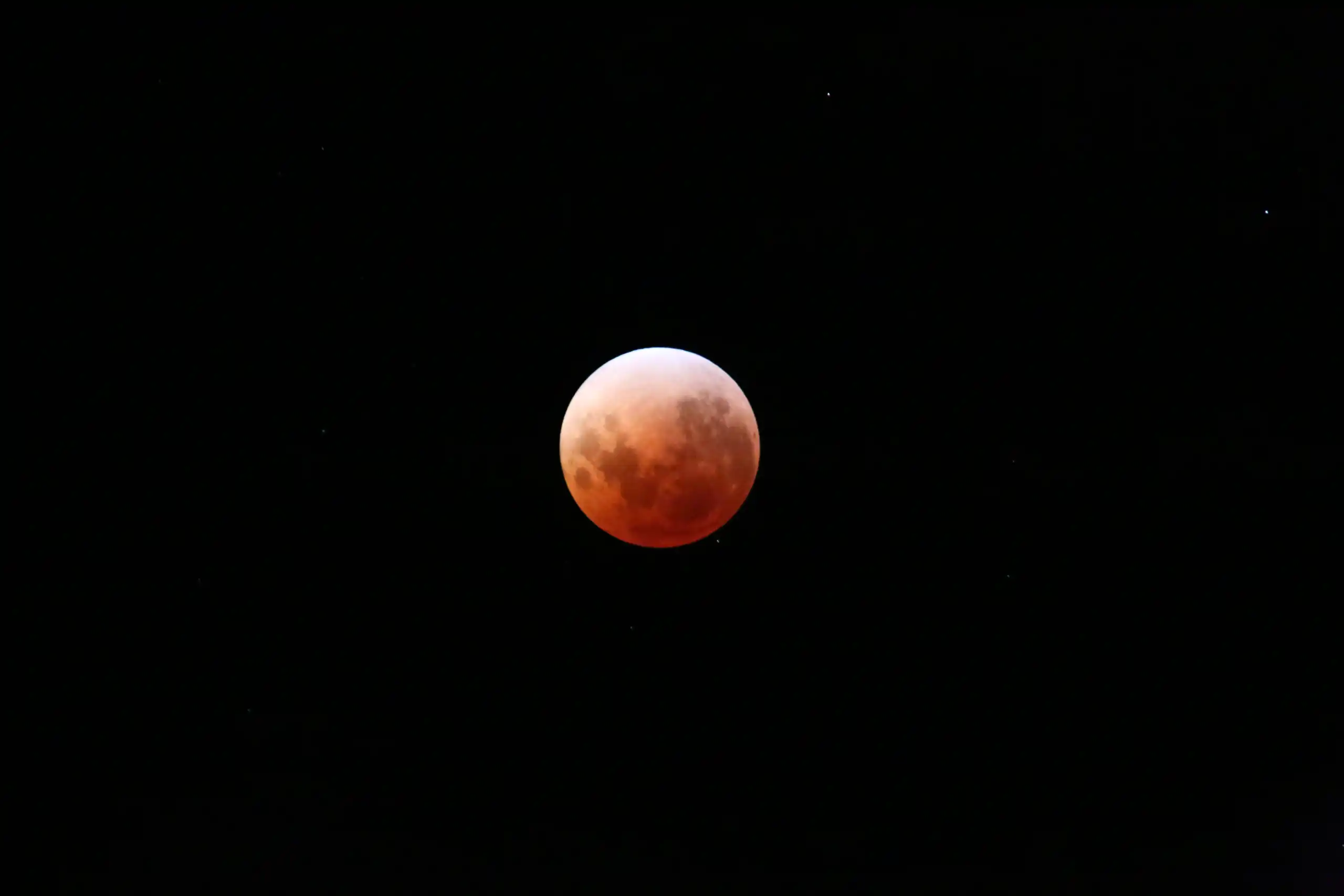 The moon moved into the larger shadow (penumbra) at 9:45pm before entering the smaller shadow (umbra) at 11pm. This is where it will start to turn red, with the Blood Moon at its most striking red hue just past midnight when it falls completely into the umbral shadow. The Moon turns red, rather than disappearing, because of the way light interacts with the atmosphere.