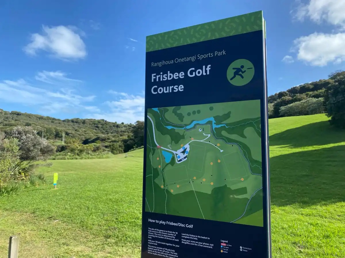 Frisbee Golf is similar to golf except it is cheaper to start playing. Its also fairly hard to lose a frisbee on grass. At the Onetangi Sports Park there is a course of 18 Baskets which is spread out in a big loop around the Park.