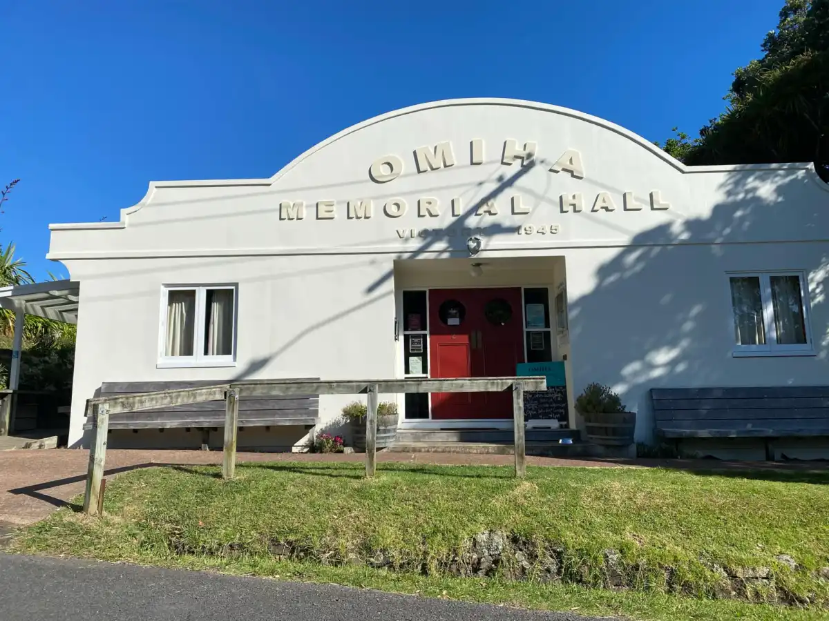 The Omiha Welfare and Recreation Society was founded in 1932 to serve the needs of the then-new community of Omiha (Rocky Bay) on Waiheke Island. An original hall and meeting house at 2 Glenbrook Road was replaced in about 1950 with the present hall, which was renamed the Omiha Memorial Hall in the hope of obtaining government funding as a World War II memorial structure. The hall was extensively refurbished in 2005, to the original 1950 plans which had never been completely implemented.