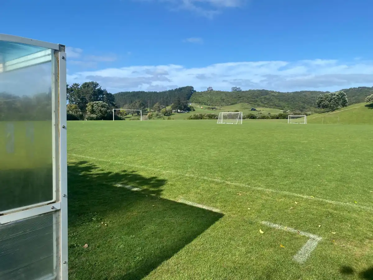 Onetangi Soccer Field is the main Soccer Field of Waiheke, it is the official size and pretty flat, with big grass berms and some smaller bleachers for sitting on watching the games. Even if the field has some small discrepancies teams change sides at half time to make it fair.