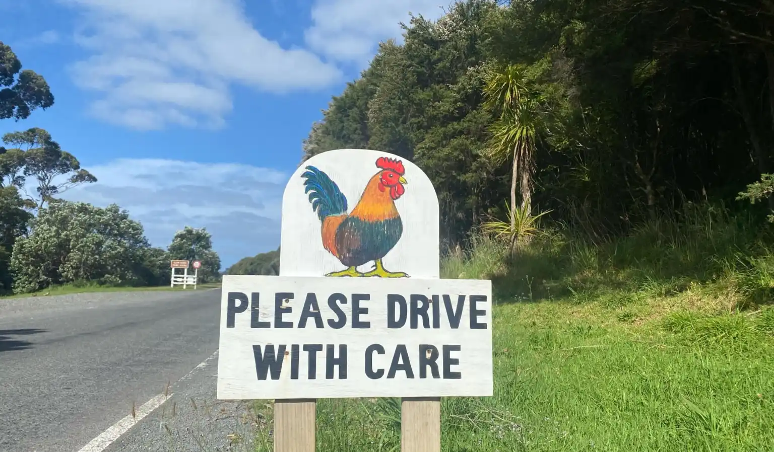 The speed limit on the road to the Sports Park is 30kmph, also be careful of roosters and ducks on the road.