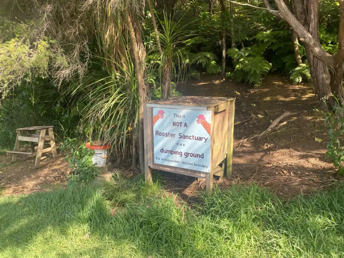 Sadly a lot of these roosters have been dumped by locals/breeders as it is illegal to have roosters on non farmland properties. So the only solution many think of is leaving them at the rooster reserve, believing it will give them a better life. Unfortunately many roosters don’t make it due to the pecking order, it is a tough life for a rooster, with many fights sometimes leading to death, starvation, dehydration, dogs and also vehicles.