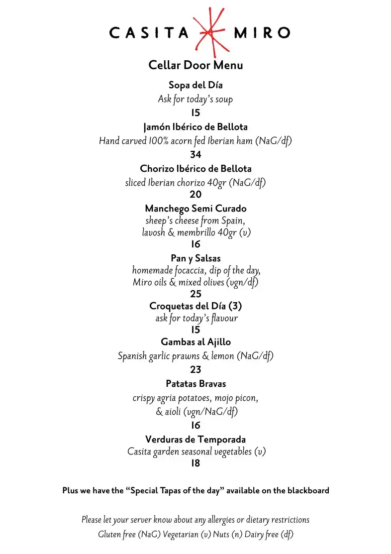 They offer a tasting flight of five Miro Vineyard wines as well as a Sherry tasting showcasing a selection of their favourite styles from Sherry houses.