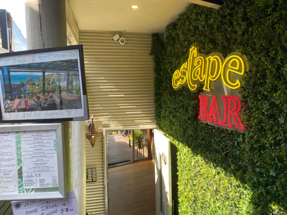 Escape bar is located in Oneroa Village looking out to Oneroa beach, it has a tropical beachy vibe where you can relax have a few drinks and catch up with friends or meet new people.