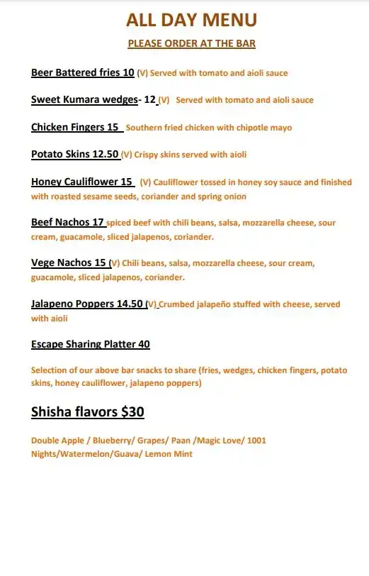 Escape Bar Menu