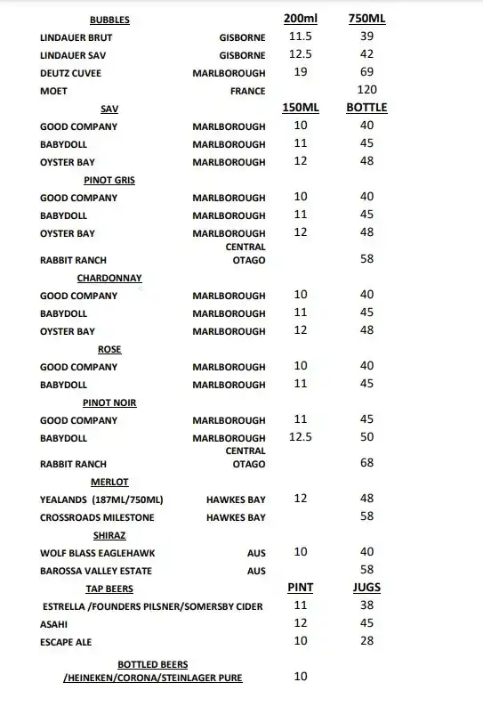 - Cocktails, wines, spirits, tap beer