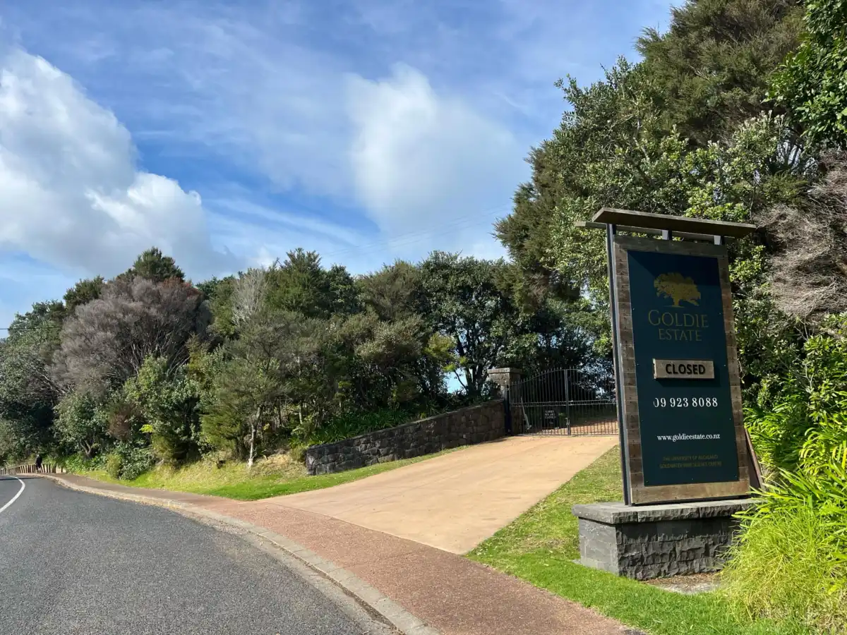 The best way to access Goldie Estate is driving from Surfdale direction or if coming from SeaLink terminal it’s about a 3-minute drive then take a right at the roundabout it is 1 minute from there. Easy access also coming from Ostend direction. Drive up the driveway or walk and witness the Beautiful views of Putiki bay.