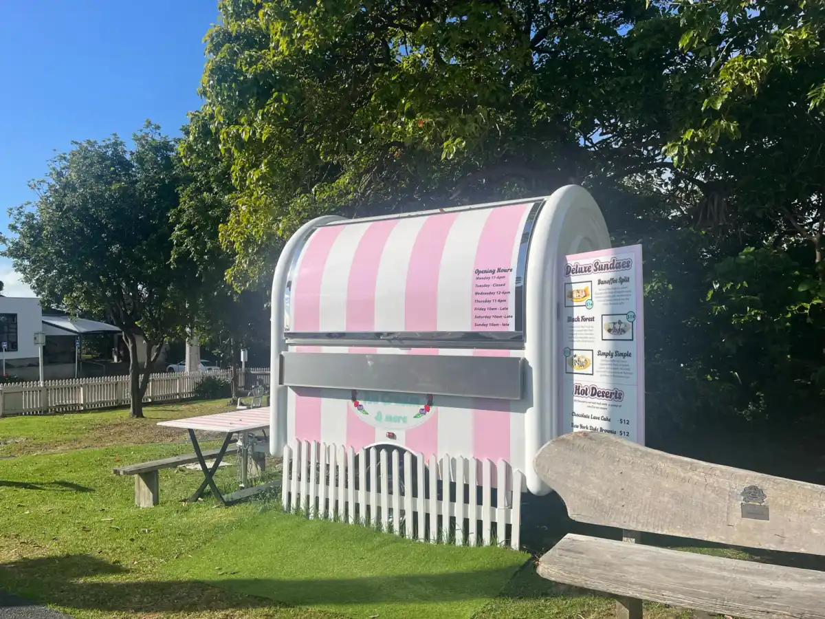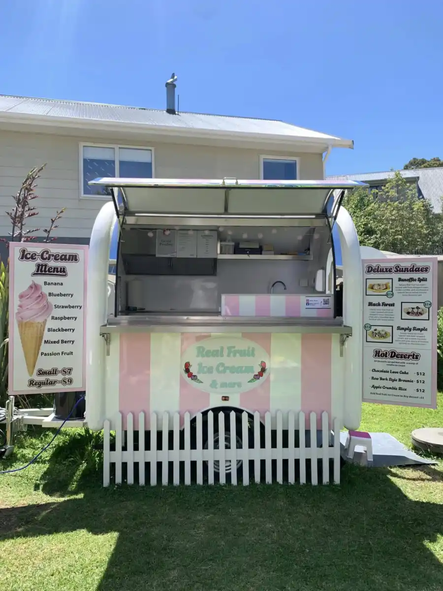 The best way to access Real Fruit Ice cream would be from the main carpark in Oneroa, there is sometimes parking on the roadside next to the cart, but it’s uncommon.