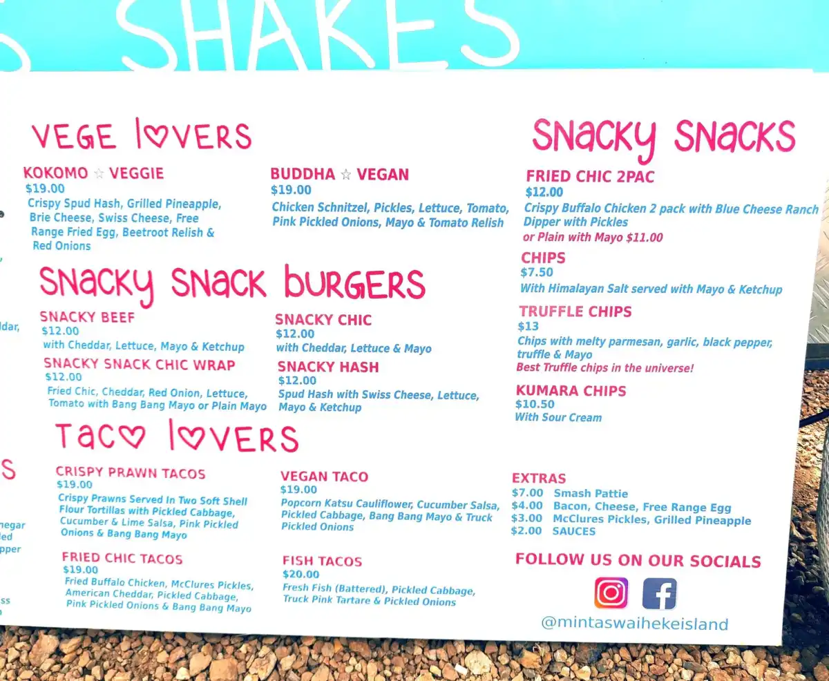 In 2025 their “Mint As Burger” has made the “Top 100 Iconic Auckland Eats” chart. This chart is a yearly list of all the top eats around Auckland, will do a update in 2026. You will also find Mint as on the discovered Auckland webpage along side many other waiheke establishments. Congratulations Mint As.