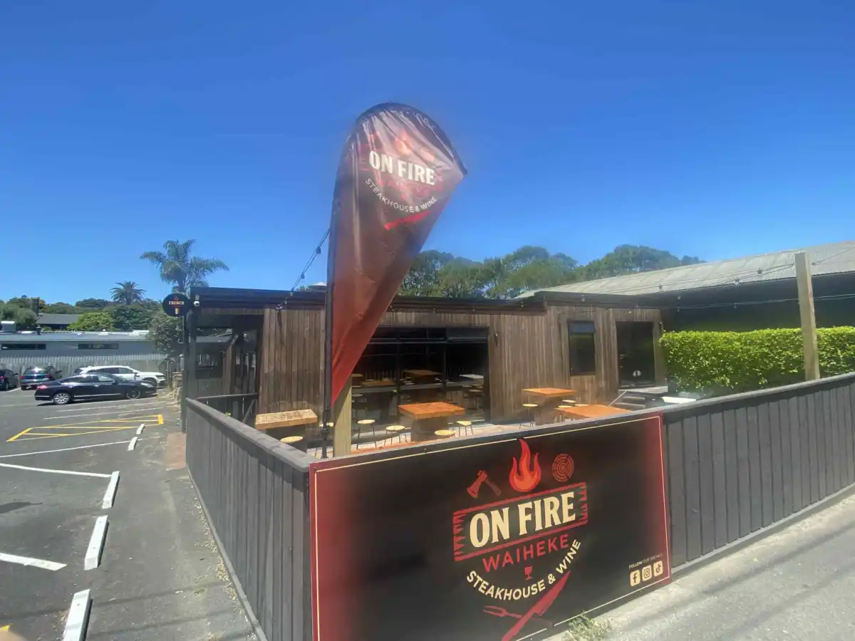 On Fire Waiheke steakhouse & wine is a new French inspired bar & grill, located in Surfdale. They offer wood-fired meats/seafoods, French wines and axe throwing.