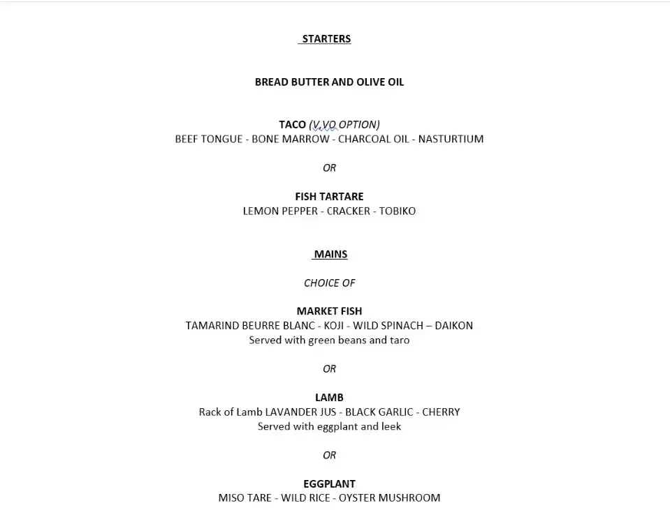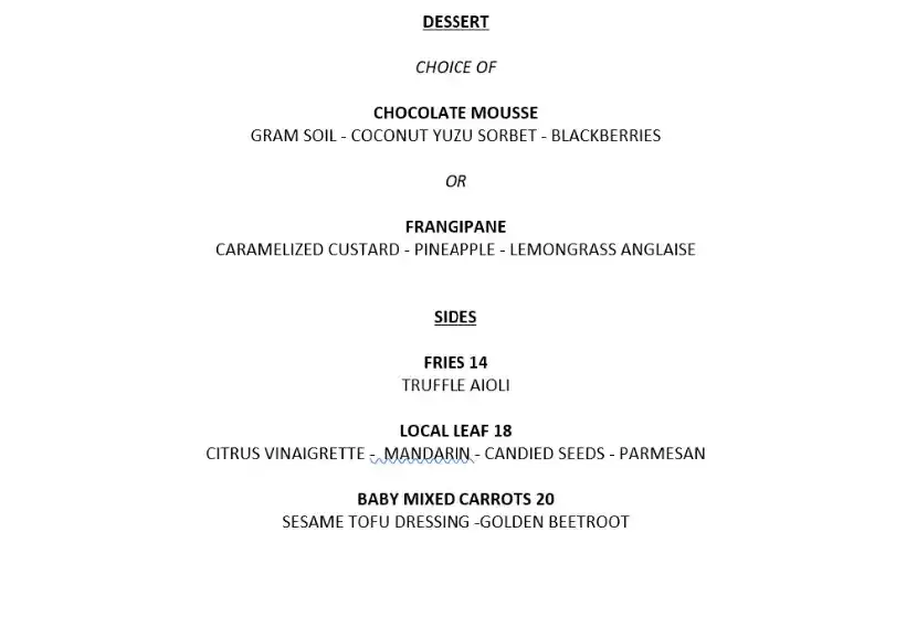 Passage Rock Menu