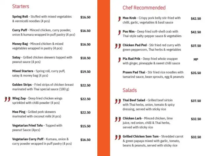 - Popular Thai Dishes ( Pad Thai, Thai Curries, Pad Med (cashew)