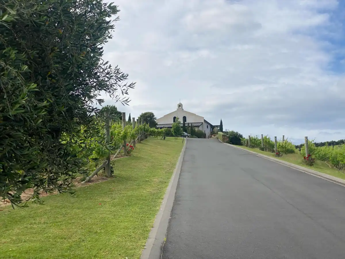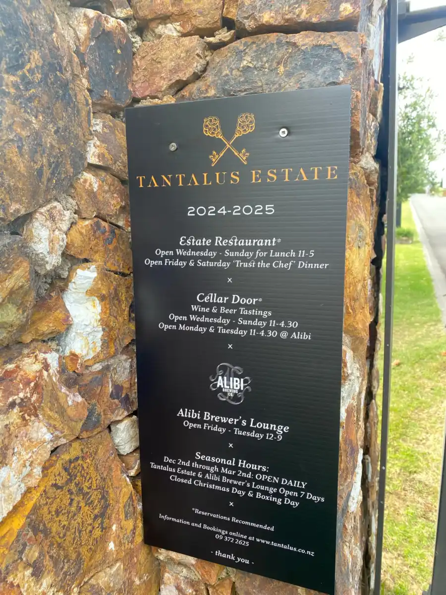 The best way to access Tantalus Estate would be coming from Ostend, that way you can pull off left into the driveway. It is has a beautiful sign and a luxurious driveway. If you are coming from Onetangi you will have to cross 60kmph oncoming traffic.