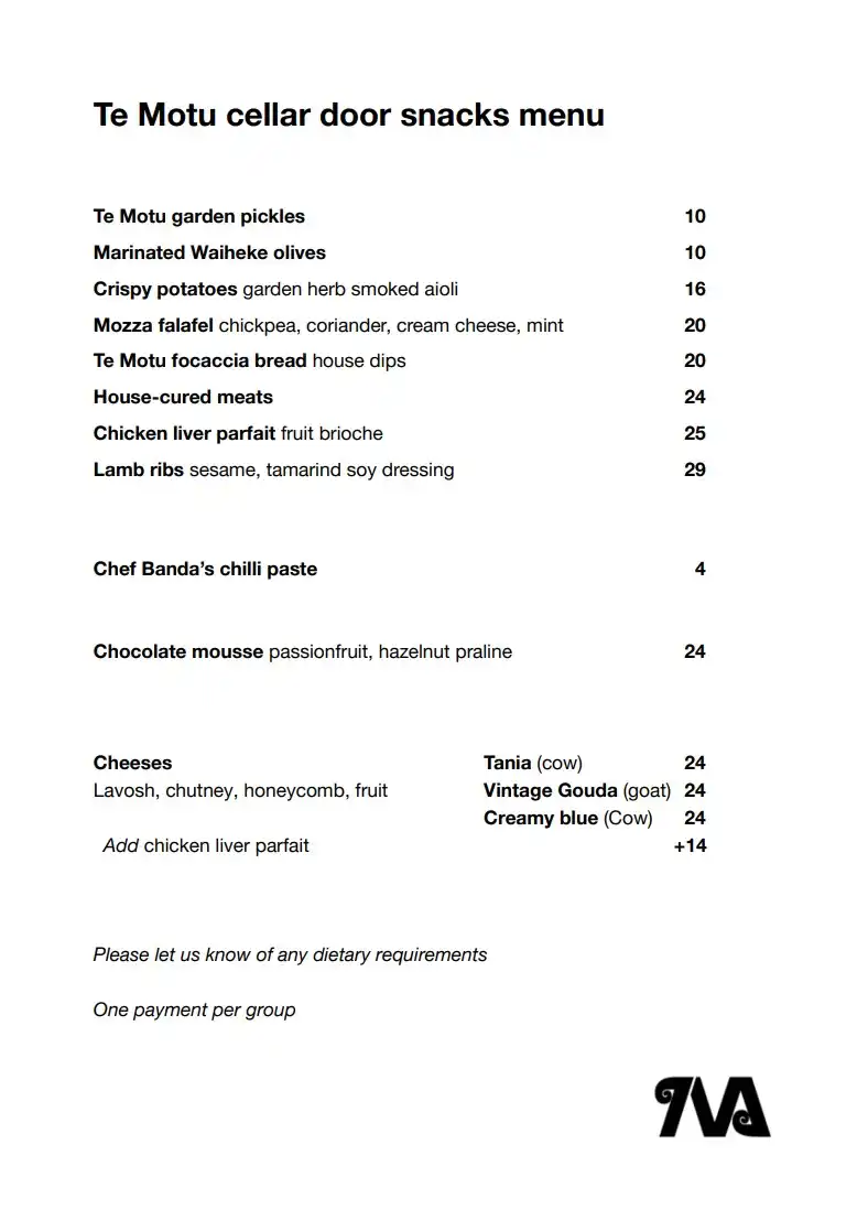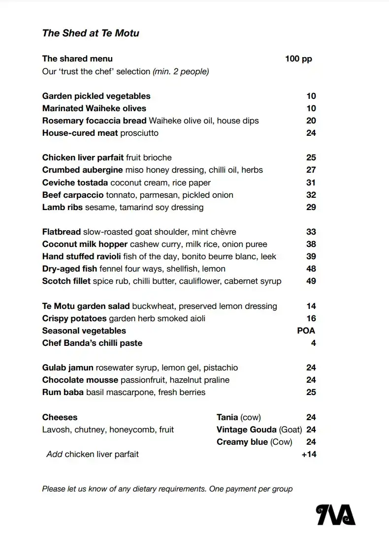 Te Motu The Shed Menu 2025