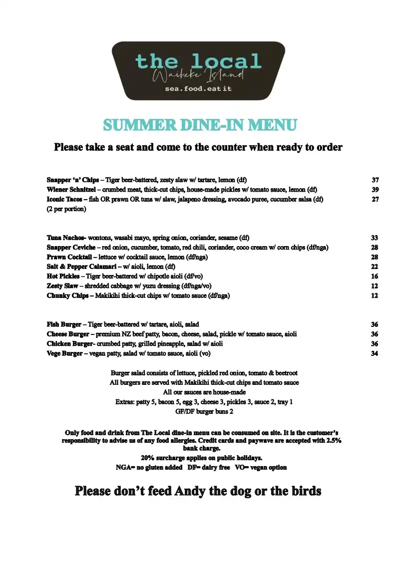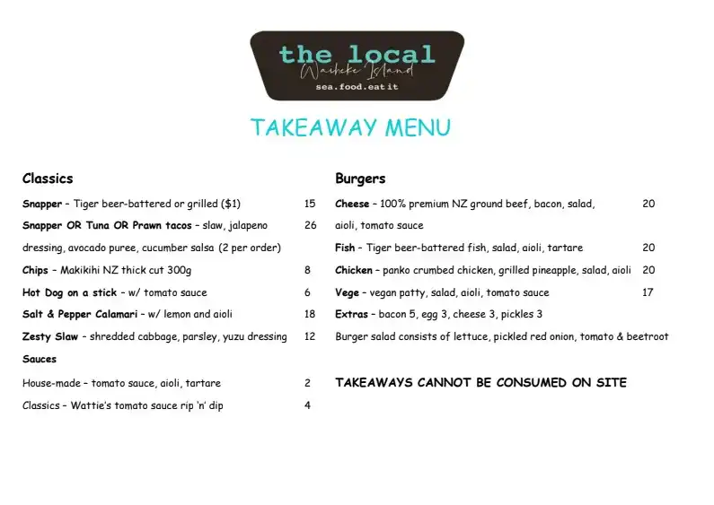 The local is a fresh gourmet seafood restaurant located in the middle of Oneroa village. Overlooking our beautiful Oneroa Beach, they offer feel good food such as NZ’s favourite summer dish beer battered fish and chips , gourmet burgers and more.