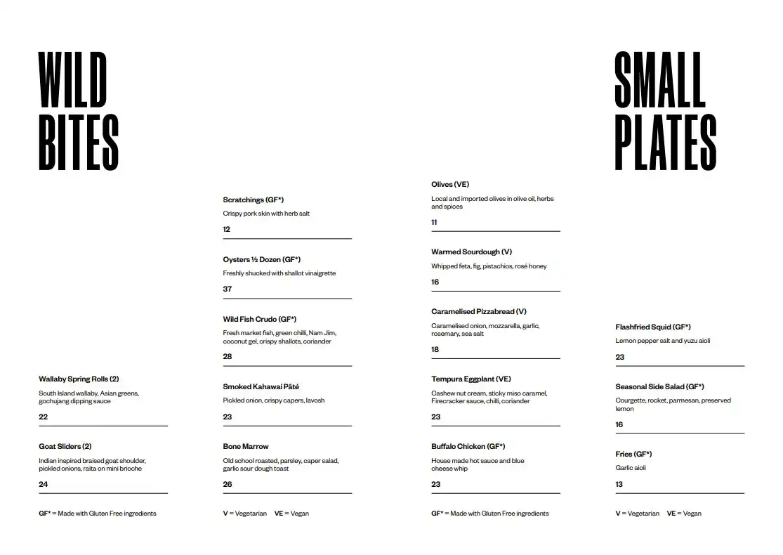 Wild Estate Menu 2025