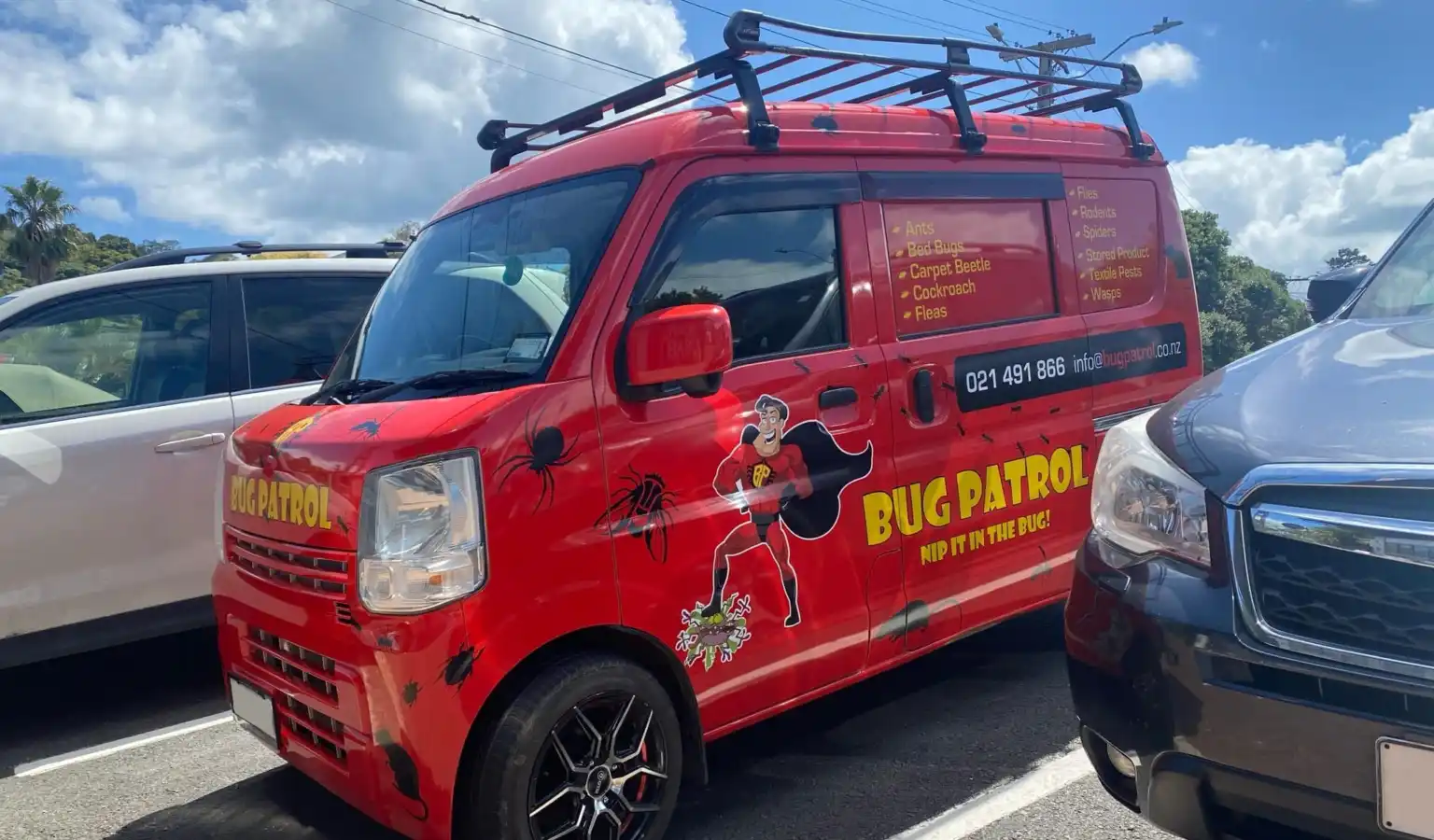 Bug Patrol specialise in rodent and bug extermination. They have a cool looking van with all the images and details to contact them you might see them driving around Waiheke.
