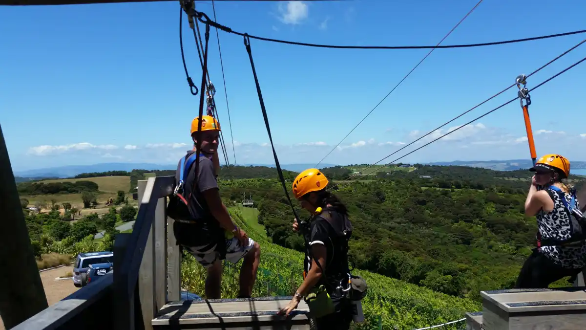 On your arrival to waiheke you will be picked up by their Eco Zip shuttle at Matiatia ferry terminal, which the driver will guide you to some of Waihekes most famous beaches, incredible properties and vineyards, as you travel to Trig Hill, one of the highest points on the island and home to EcoZip HQ.