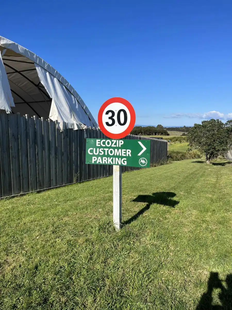 The best way to access EcoZip would drive up Trig hill road at the end there is a cul-de-sac with a private driveway/road, EcoZip is located down the driveway. There is plenty of parking at EcoZip parking lot