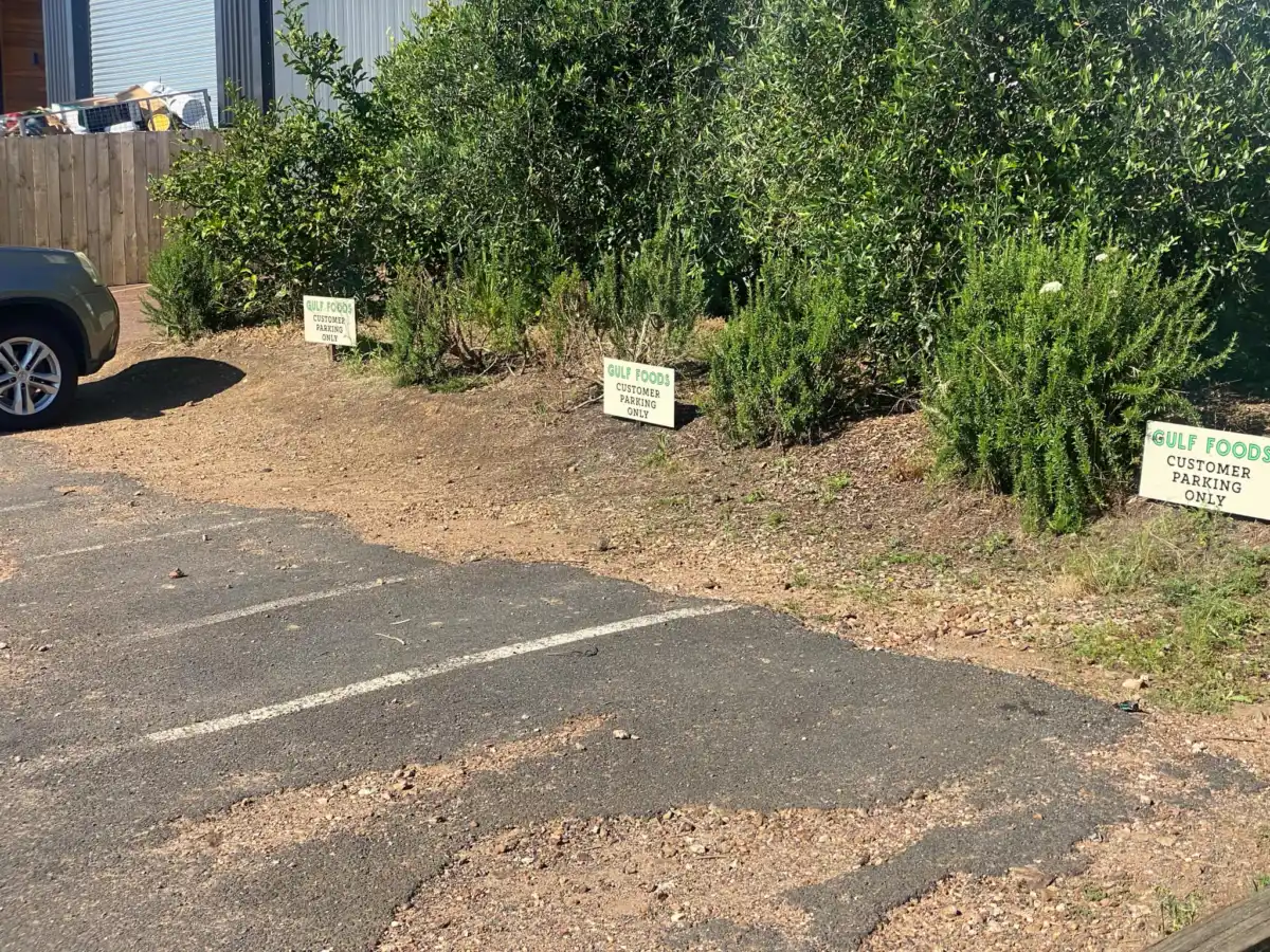 Gulf foods can be accessed by either direction on Tahi Road. Tahi Road can be pretty busy during the weekdays with vehicles. So parks may not always be available, but normally only take a few minutes to become available.