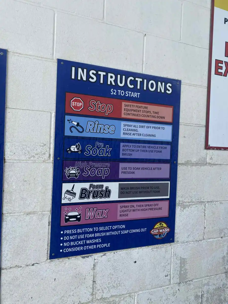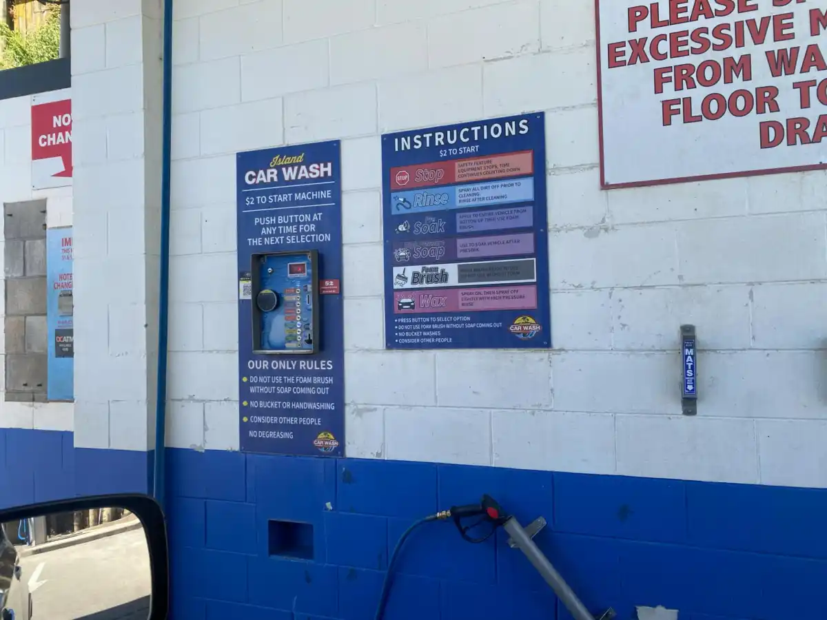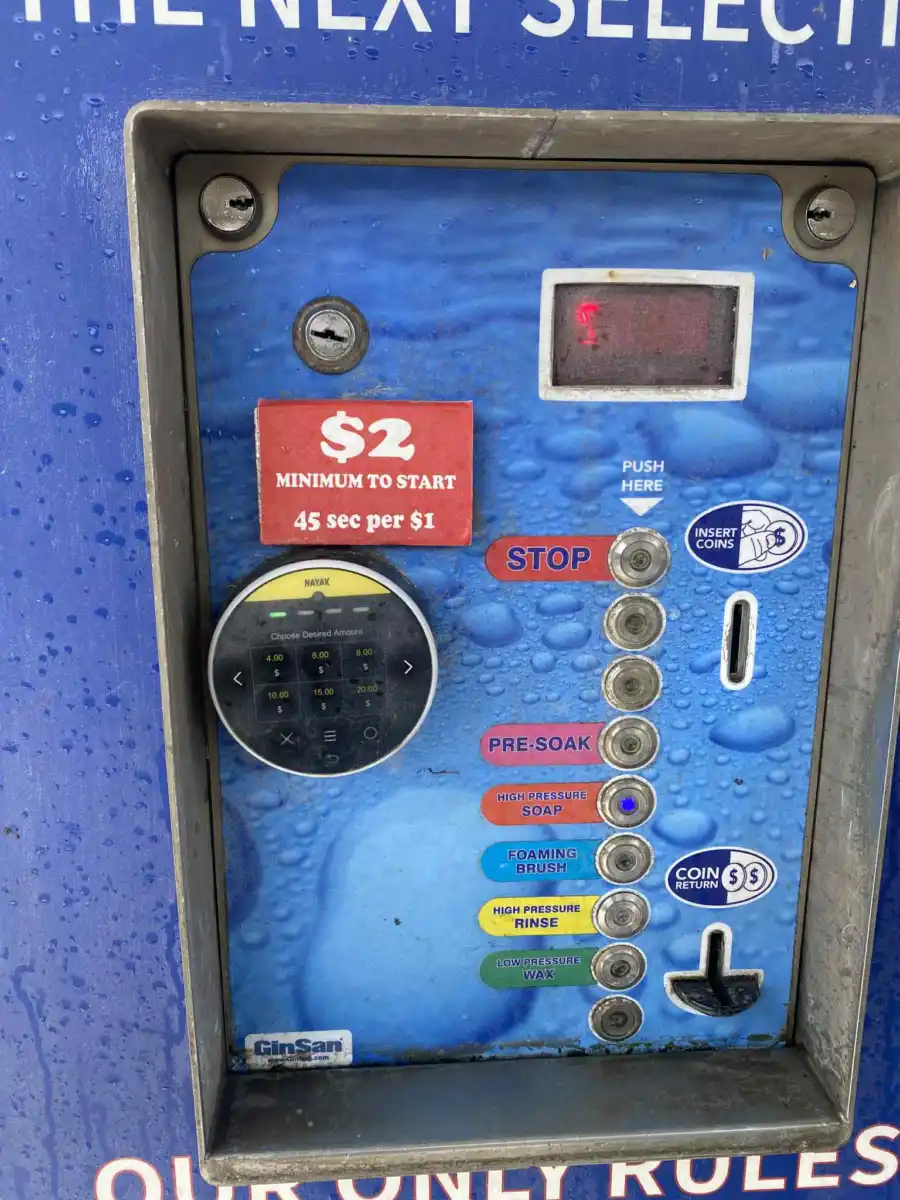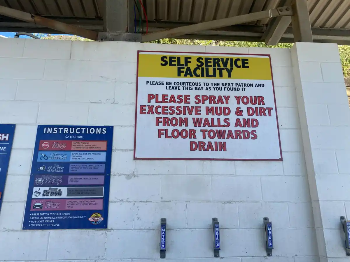The carwash is 24/7 offering a few options – clean the car yourself or drive through the automatic car wash. (Soap and water is provided)