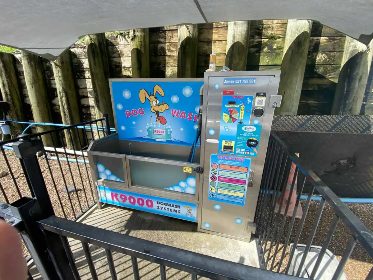 The dog wash is 24/7 – clean/wash and dry your dog. It has a access gate to help keep animals contained. Fido shampoo, flea shampoo and conditioner is included in this service.