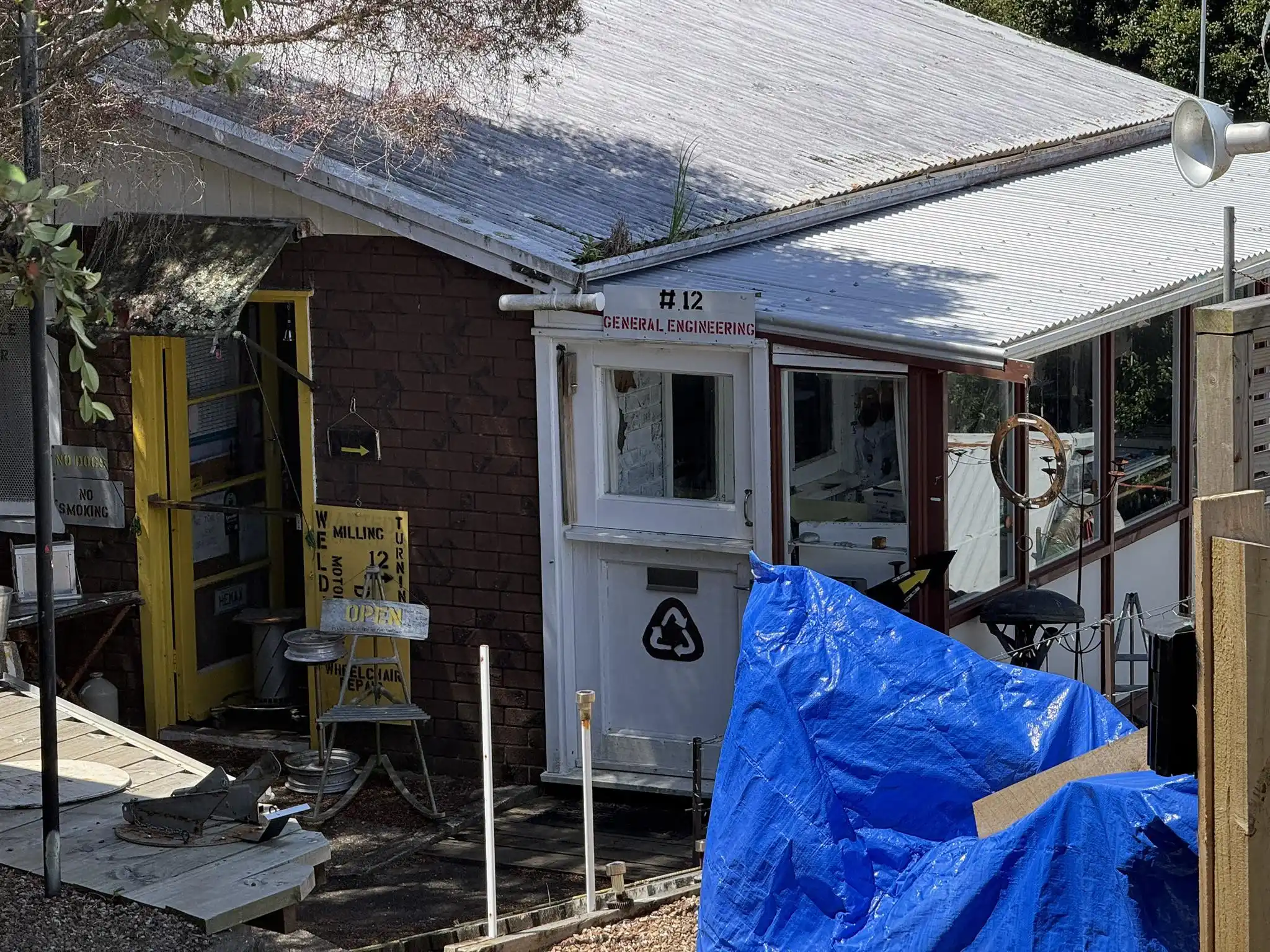 This is one of the main motorcycle repair places on the island. He also likes metal art and a wide range of smaller projects.
