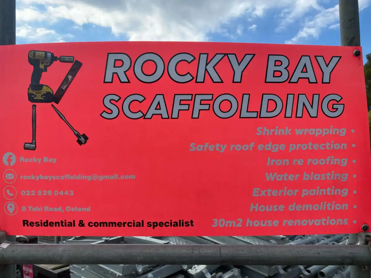 Rocky Bay Scaffolding is a Waiheke based scaffolding service located on Tahi Road, Ostend. They specialize in providing scaffolding for new builds, renovations, repaints, timber staining, and small projects.