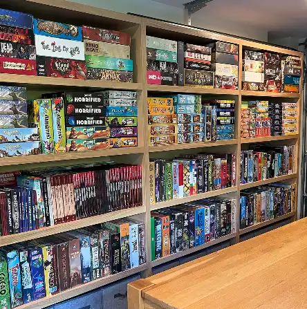 They have set the games up in a way that one wall is the easy to play games. The other wall of games is much harder or games that take a long time, for the more dedicated gamers. They also have packs of games that are good for groups/parties.