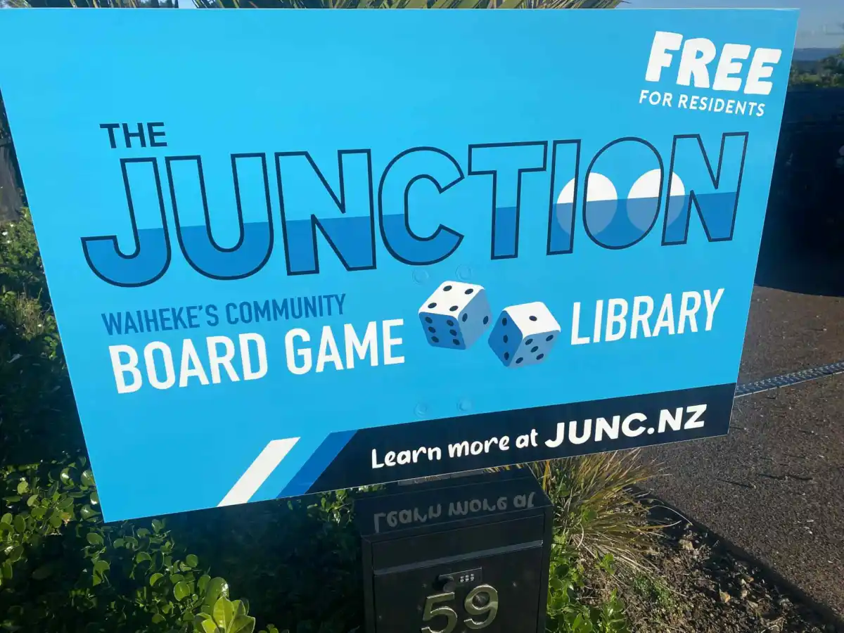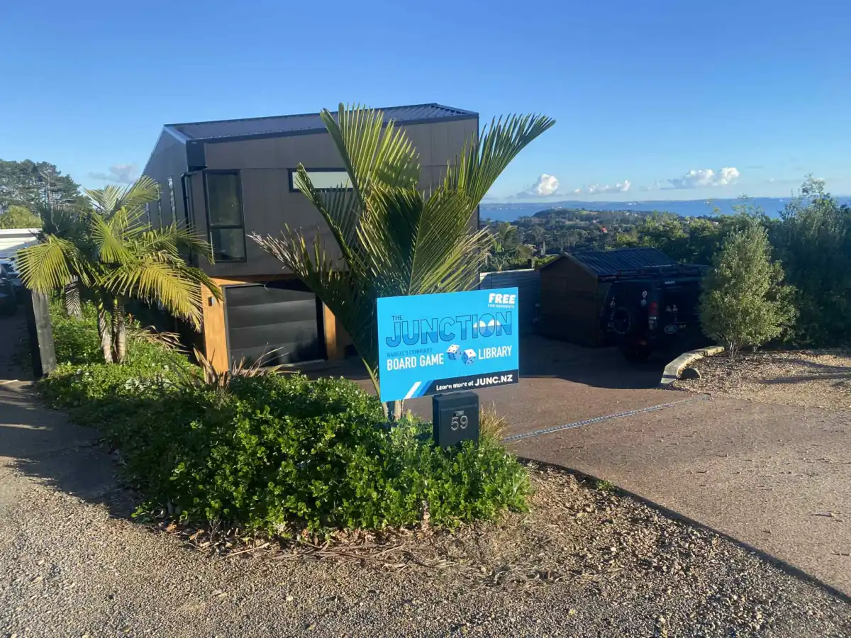 The Junction is a Waiheke community library filled with over 600 board games. It is set up in a Waiheke residents garage for residents to borrow any game for free.