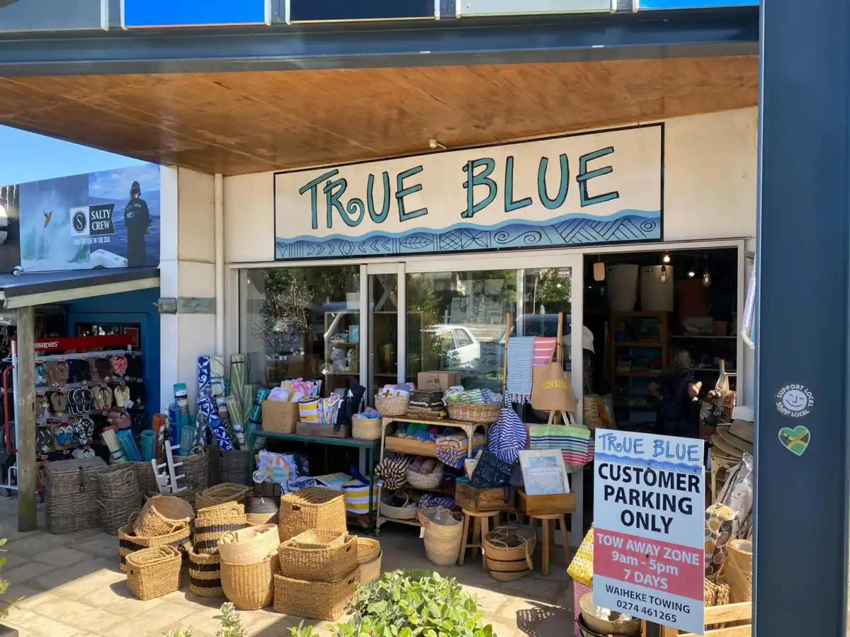 At True Blue they sell beach games, baskets, Waiheke themed products, tea towels, shells, jigsaws, gift cards and more. Many of the items are locally made.