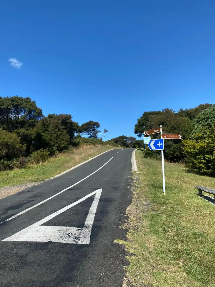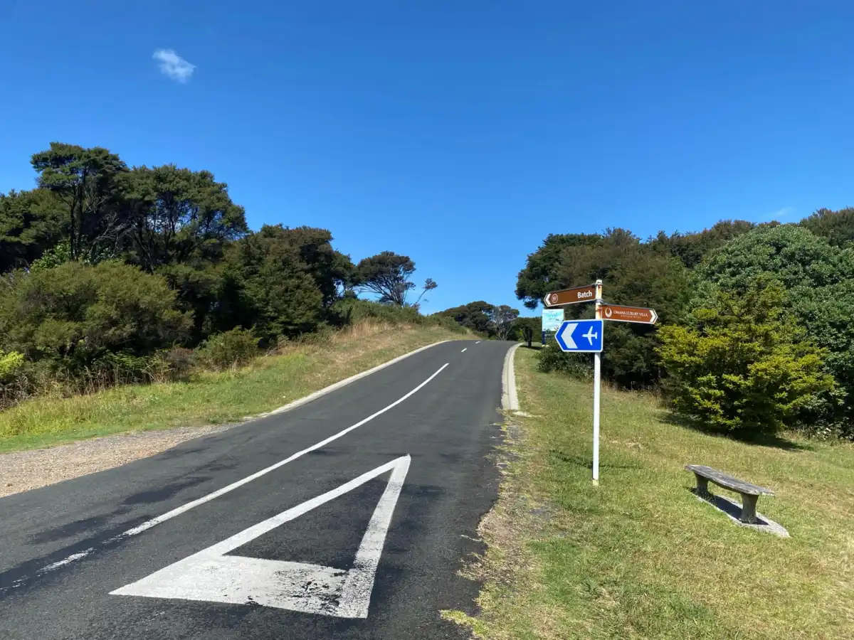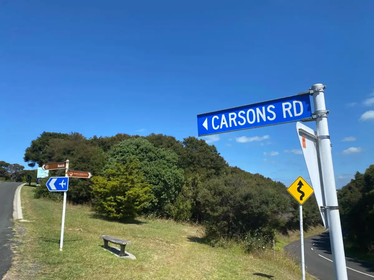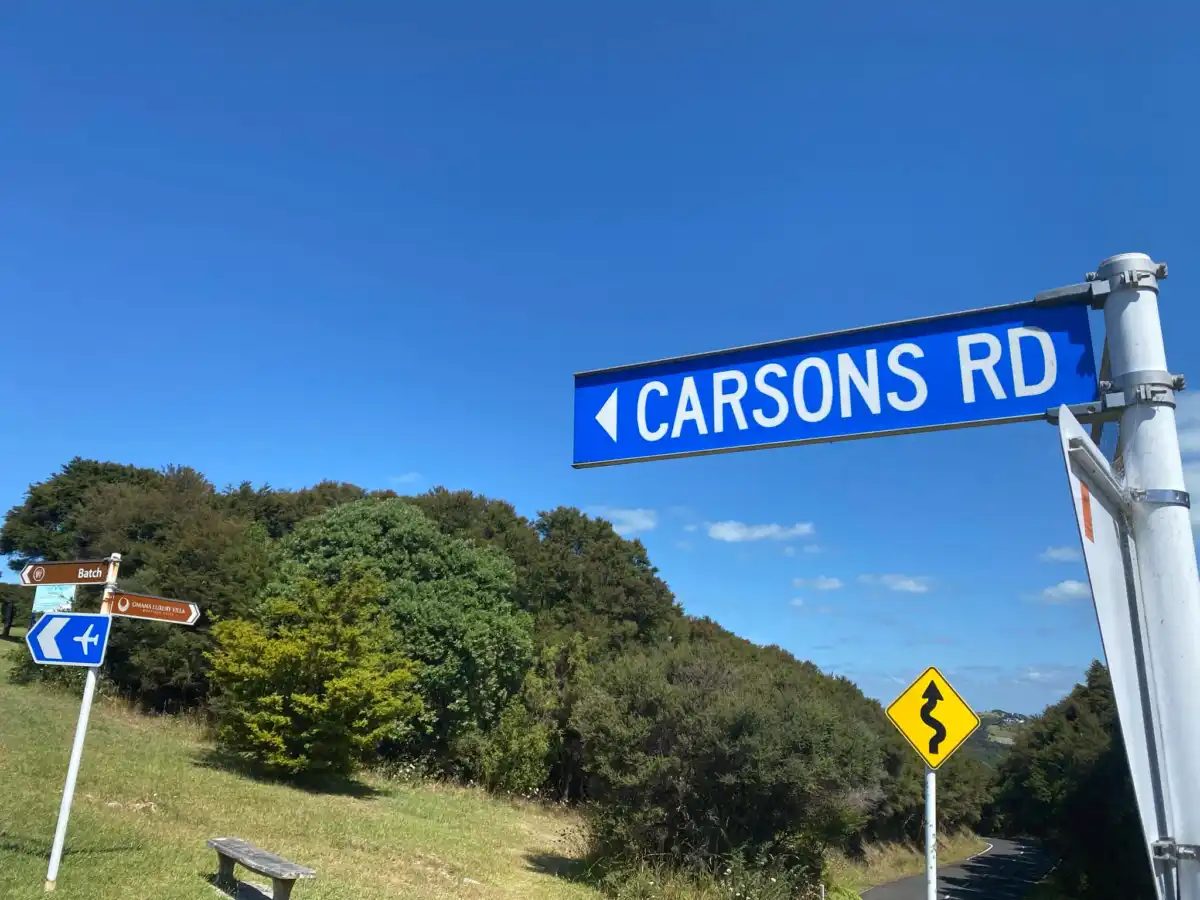 Carsons Road is located in Omiha and kind of Onetangi at the same time. The speed limit is 50 km/h. This road takes you to up to Batch winery and the Waiheke Airport.