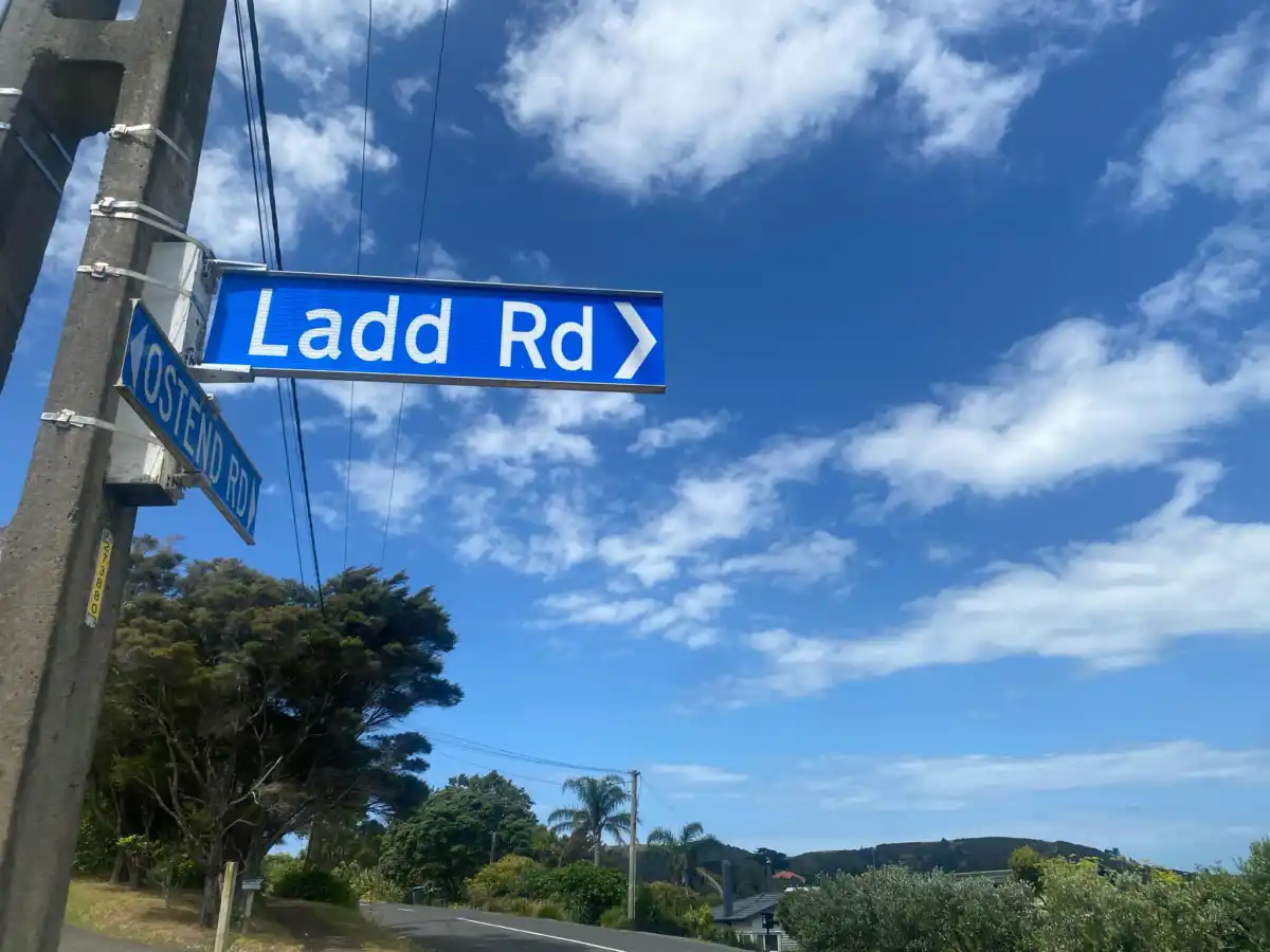 Ladd Road is located on the Putiki bay side of Ostend. The speed limit is 30 km/h and the road leads you down to Anzac Bay that can look nice in the mornings and high tides.