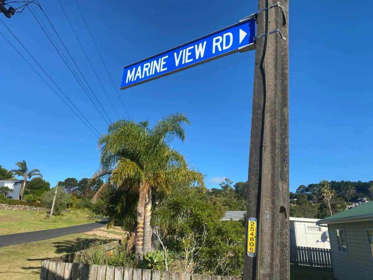 Marine View Road is a short road. With no footpaths and some parking on the grass berms. The road is partly sealed road and walking distance from Onetangi Beach.