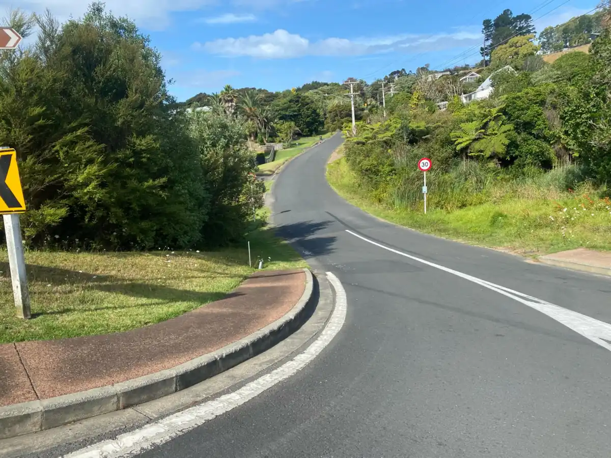 | Korora Road | Oneroa | 30 km/h | 2200 m | Trees/Seaview | Yes | No | No |