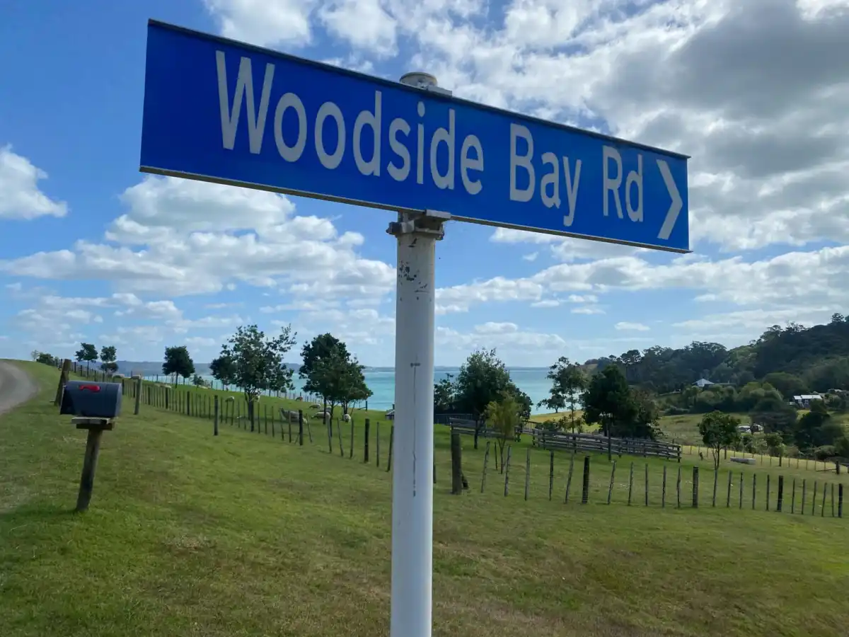 Woodside Bay Road is located in Omiha and more specifically Woodside Bay. The speed limit is 40 km/h. This road takes you to down to Woodside Bay and a defib machine.
