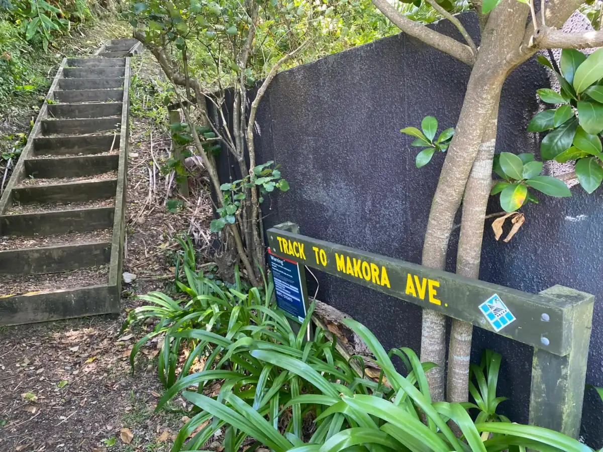 Makora Ave to Kiwi Street walkway is the walkway that connects you from the Middle of Makora Ave down close to Blackpool beach. Or if you are down at the left side of Blackpool beach you can walk up Kiwi Street 20-30 m to get access to the bottom of the walkway.