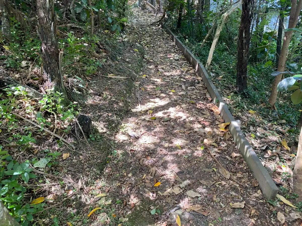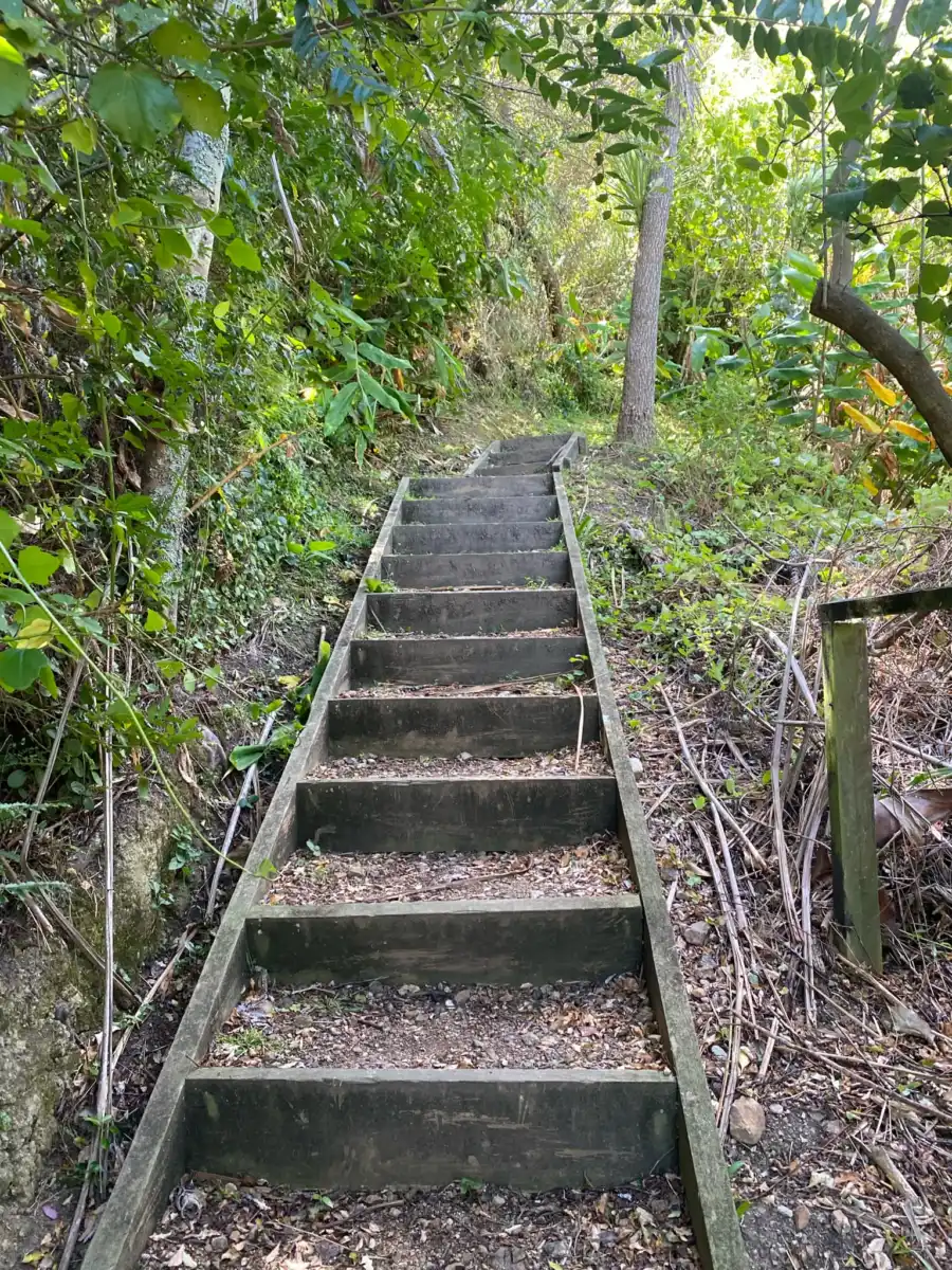 If you are going up the walkway, you will be greeted with over 80 steps, with some nice trees and nature, just be careful to follow the yellow top markers as we almost ended up in a private section.