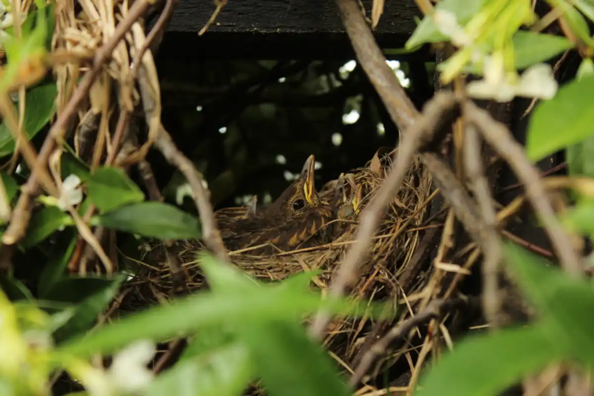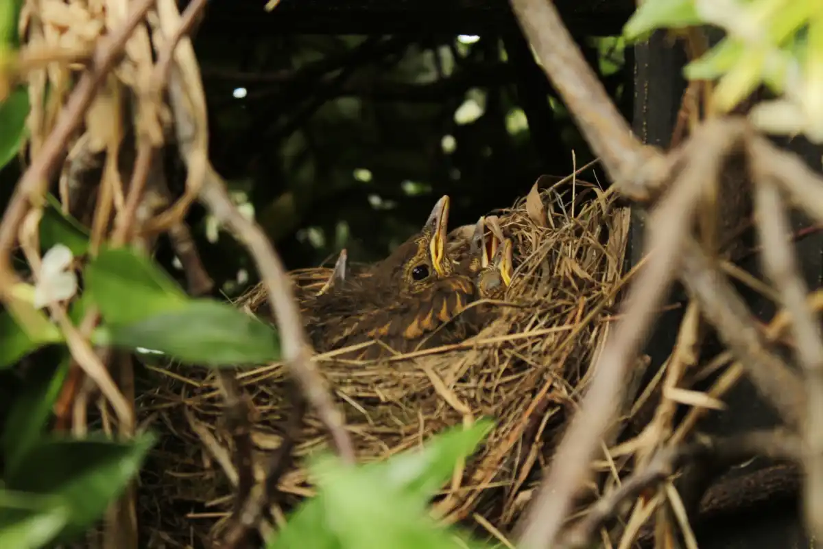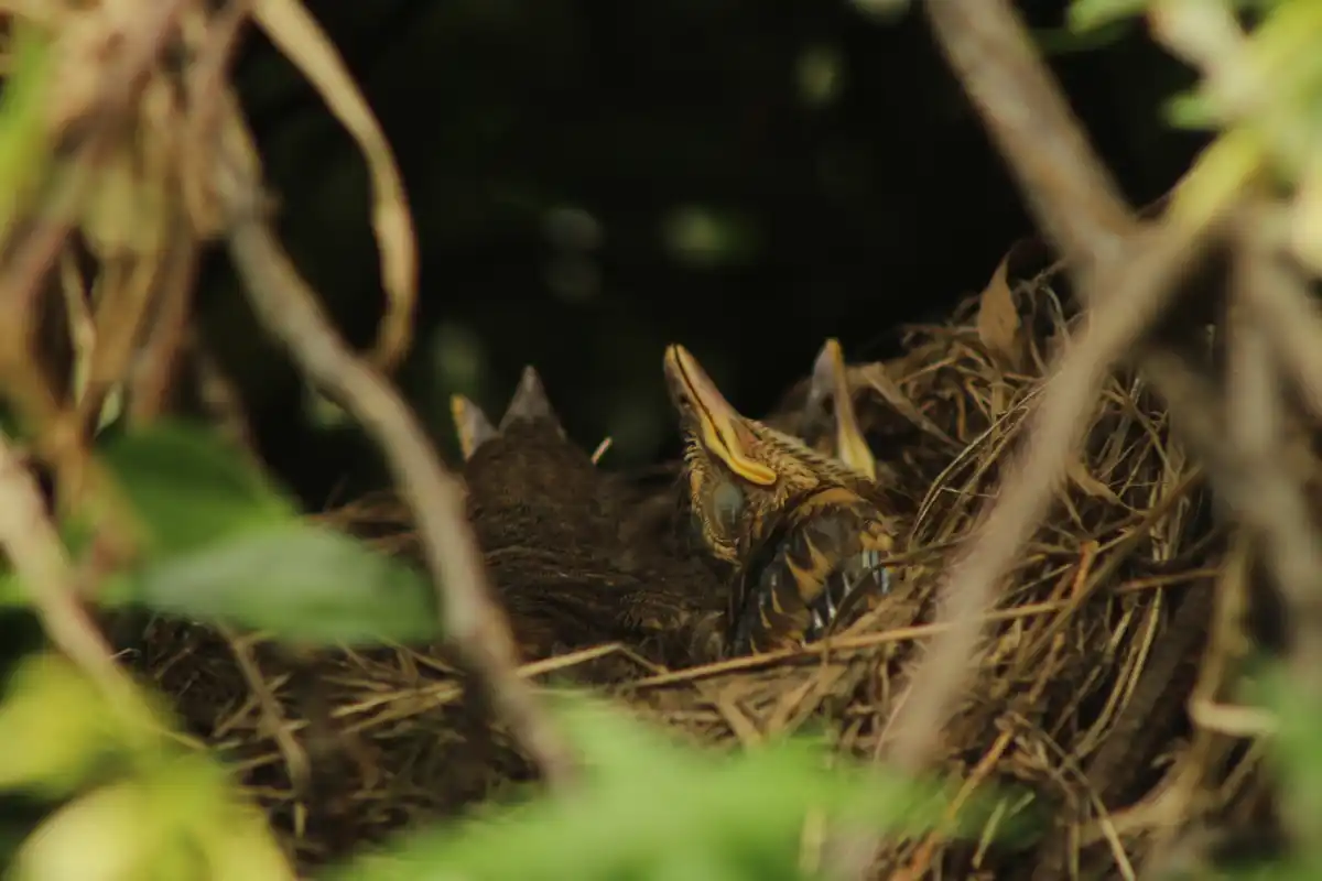 Both sexes share feeding, including of fledglings. A song thrush has been observed to have laid its eggs in the nest of a blackbird (an example of brood parasitism) but the two song thrush young that hatched out were ejected from the nest, which was subsequently deserted.